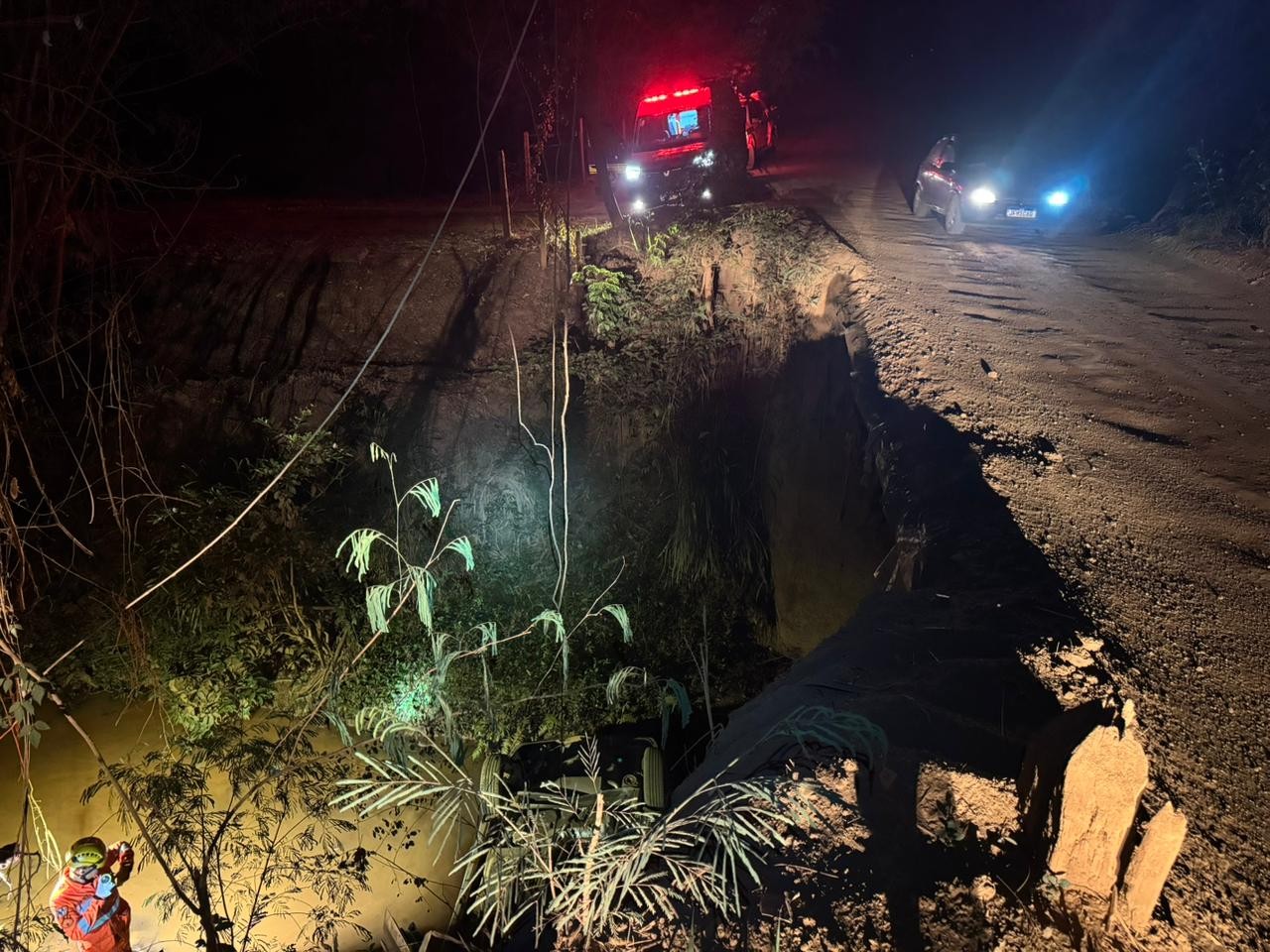 Segundo bombeiros, ponte onde ocorreu o acidente é estreita, sem proteções laterais e sem sinalização